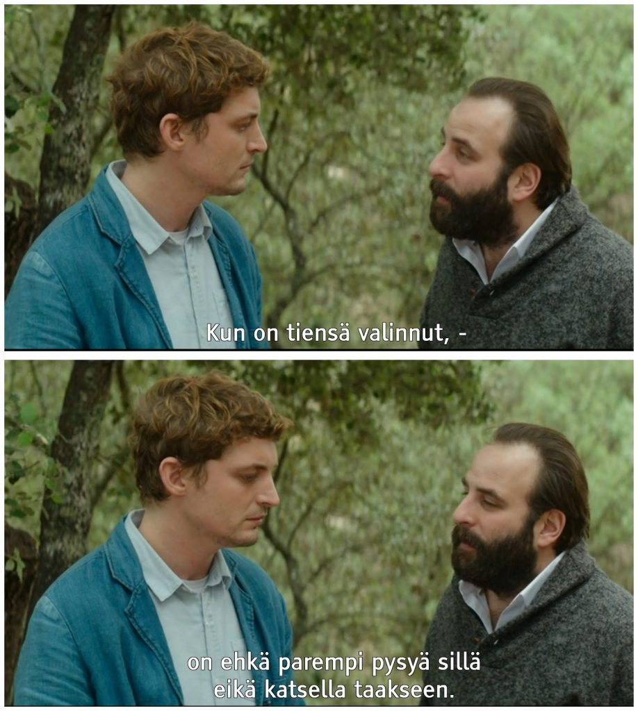 Dialogin runsaus ja monipuolinen ilmaisu – kuinka nautinkaan tästä Ranskalaisen elokuvan tyypillisestä piirteestä. Eikä käännöksessä kertaakaan mainittu kuplaa tai mukavuusaluetta! Kuuntelin elokuvan kuulokkeilla, jolloin musiikista pystyi myös nauttimaan täydesti. Tätä ei todellakaan kannata katsoa iltamyöhällä television kautta siten, että on pidettävä äänen voimakkuutta pienellä naapurien tai muiden syiden vuoksi.