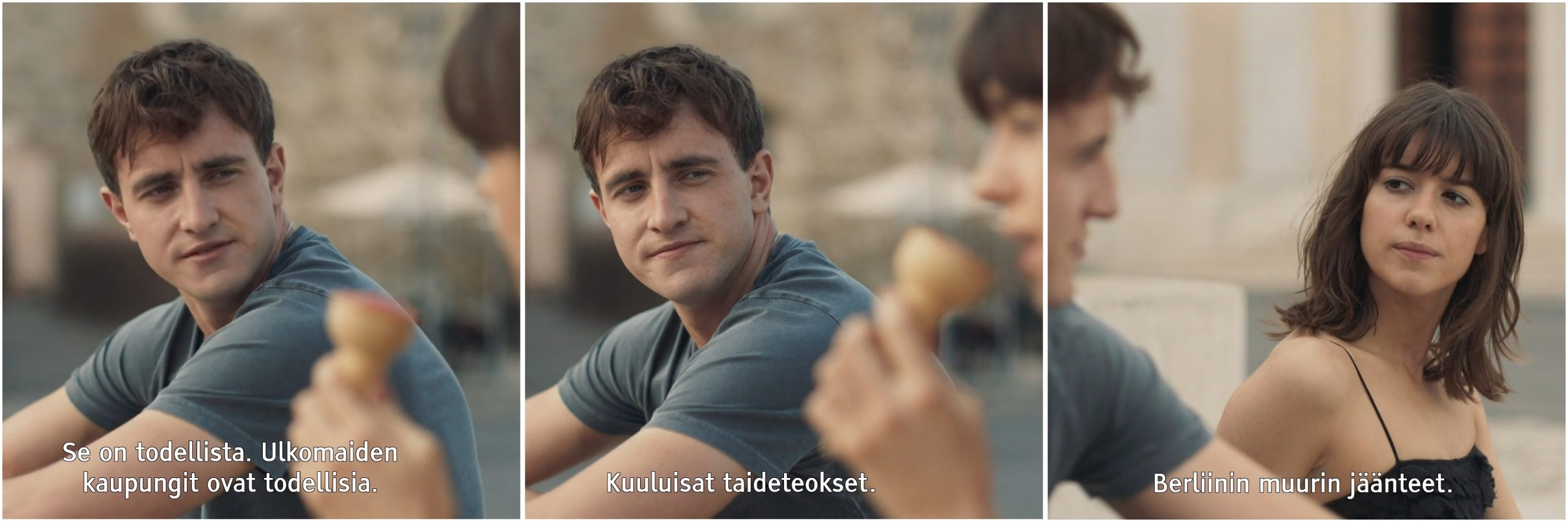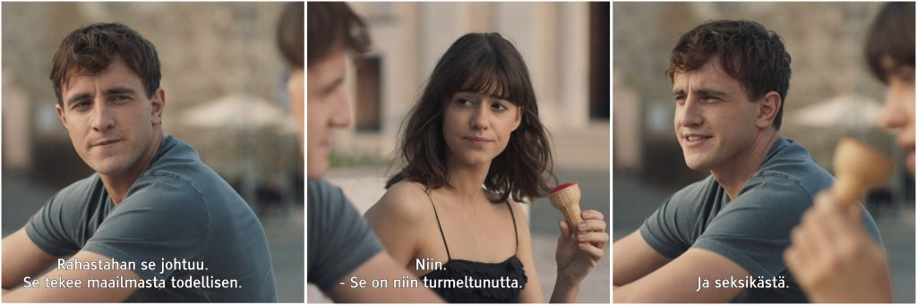 Eräässä kohtauksessa sarjan toinen päähenkilö Connell tapaa ystävänsä Mariannen Italiassa Mariannen isältä perityssä huvilassa, jonne Connell kaverinsa Niallin kanssa matkustaa Interrail- matkallaan. Connell on yksinhuoltajaperheestä kotoisin oleva vähävarainen opiskelija, joka stipendin saatuaan pystyy nyt matkustamaan, eikä joudu enää kaikkina loma-aikoina töissä uurastamaan opiskelurahoja tienaamassa. Kohtauksessa Connell ja Marianne keskustelevat ja Connell kertoo, miten mahtavalta matkustaminen on tuntunut.